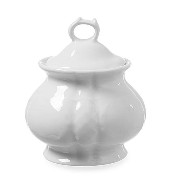 Сахарница, изготовлена из ударопрочного белого фарфора. Усиленные края, глазурь высокого качества. Имеет удобную ручку и крышечку. Можно использовать в микроволновых печах и мыть в посудомоечных машинах.