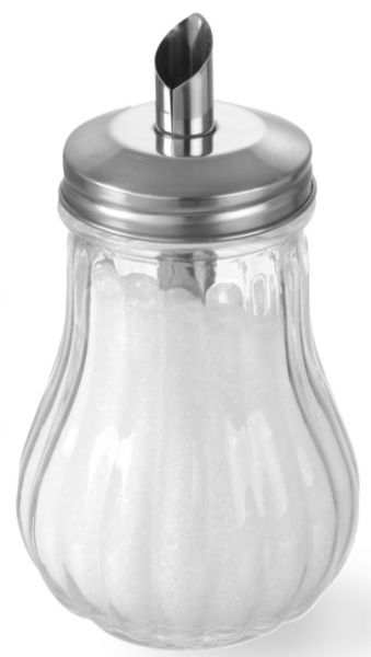 Сверху, сахарница Hendi 461129, накрывается крышкой с дозатором, через который просыпается определенное количество сахара.