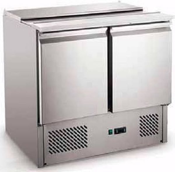 Холодильный стол, где сверху расположена структура для гастроемкостей - это саладетта. В данных емкостях хранятся либо отдельные ингридиенты для салатов, либо холодные закуски либо уже готовые блюда не смешивая их запахи.
