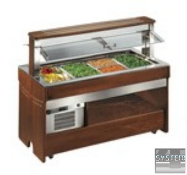 Салат-бар – это охлаждаемая витрина для демонстрации и кратковременного хранения охлажденных блюд в торговом зале ресторана или магазина. Салат-бар поддерживает температурный режим -2...+10°С и позволяет разместить несколько гастроемкостей. Салат-бар прекрасно подойдет для организации обслуживания мероприятий по системе «шведский стол», предоставляя посетителям самостоятельно выбрать для себя блюда. В магазинах такое оборудование используется в отделах самообслуживания и позволяет покупателю самостоятельно выбрать нужное количество блюд или продуктов.