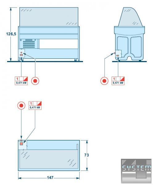 Комплектуется 4 контейнерами 1/1 GN и 3 направляющими 1/1 GN для дальнейшей комплектации полками.
