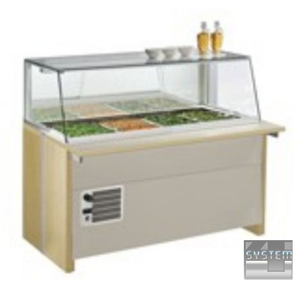 Салат-бар – это охлаждаемая витрина для демонстрации и кратковременного хранения охлажденных блюд в торговом зале ресторана или магазина. Салат-бар поддерживает температурный режим -2...+10°С и позволяет разместить несколько гастроемкостей. Салат-бар прекрасно подойдет для организации обслуживания мероприятий по системе «шведский стол», предоставляя посетителям самостоятельно выбрать для себя блюда. В магазинах такое оборудование используется в отделах самообслуживания и позволяет покупателю самостоятельно выбрать нужное количество блюд или продуктов.