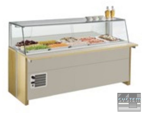 Салат-бар – это охлаждаемая витрина для демонстрации и кратковременного хранения охлажденных блюд в торговом зале ресторана или магазина. Салат-бар поддерживает температурный режим -2...+10°С и позволяет разместить несколько гастроемкостей. Салат-бар прекрасно подойдет для организации обслуживания мероприятий по системе «шведский стол», предоставляя посетителям самостоятельно выбрать для себя блюда. В магазинах такое оборудование используется в отделах самообслуживания и позволяет покупателю самостоятельно выбрать нужное количество блюд или продуктов.