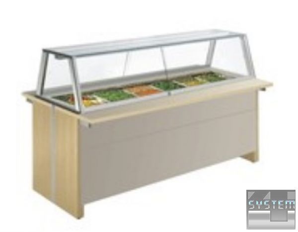 Салат-бар – это охлаждаемая витрина для демонстрации и кратковременного хранения охлажденных блюд в торговом зале ресторана или магазина. Салат-бар поддерживает температурный режим -2...+10°С и позволяет разместить несколько гастроемкостей. Салат-бар прекрасно подойдет для организации обслуживания мероприятий по системе «шведский стол», предоставляя посетителям самостоятельно выбрать для себя блюда. В магазинах такое оборудование используется в отделах самообслуживания и позволяет покупателю самостоятельно выбрать нужное количество блюд или продуктов.