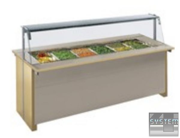 Горизонтальный салат бар, закрытая со стороны посетителя, обслуживаемая персоналом версия.
