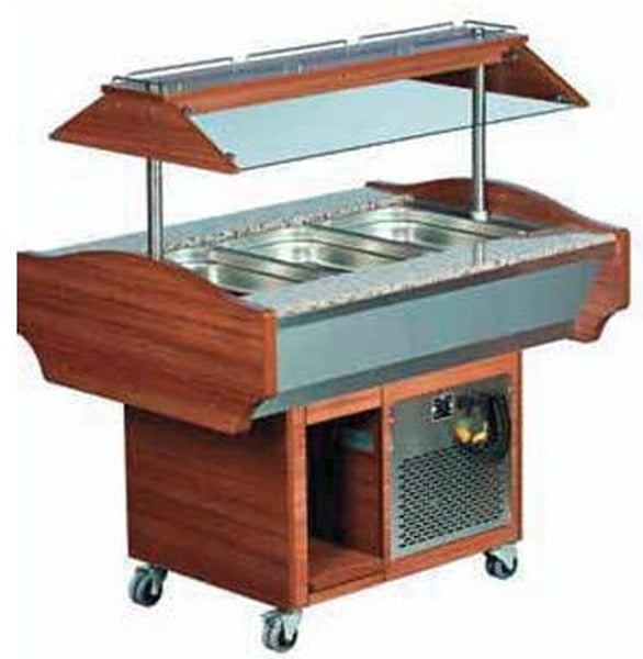Для того чтобы продемонстрировать блюдо в торговом зале ресторана или магазина вам понадобится охлаждаемая витрина, такая как салат-бар. Кроме того, она рассчитана на кратковременное хранение продуктов. Салат-бар поддерживает заданный температурный режим и позволяет разместить несколько гастроемкостей.