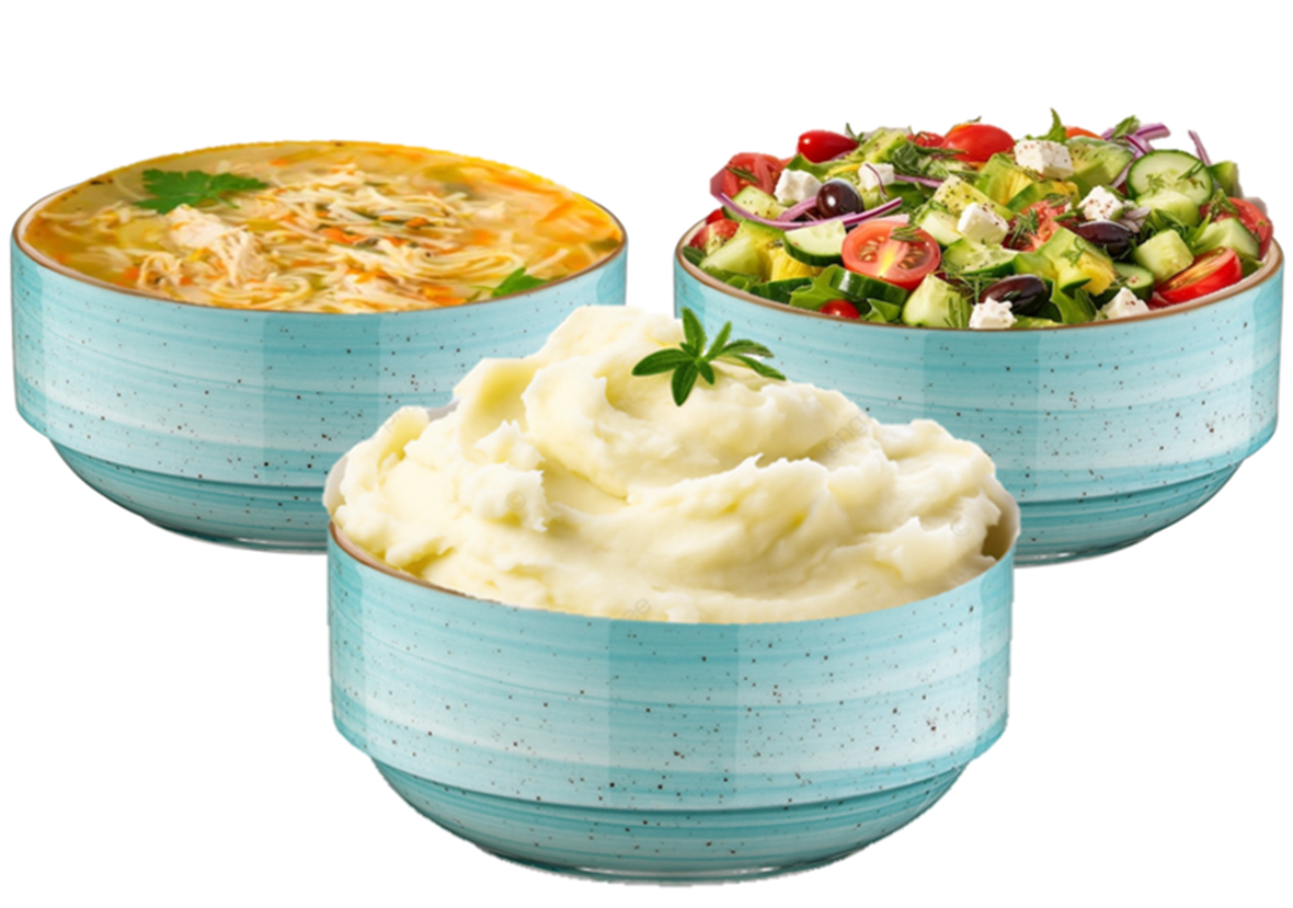 Плоские тарелки и салатники имеют укрепленный борт, который выдерживает высокие механические нагрузки, благодаря чему изделия почти не подвержены сколам.