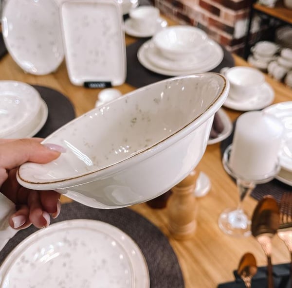 Тарелки и салатники имеют укрепленный борт, который выдерживает высокие механические нагрузки, благодаря чему изделия почти не подвержены сколам.