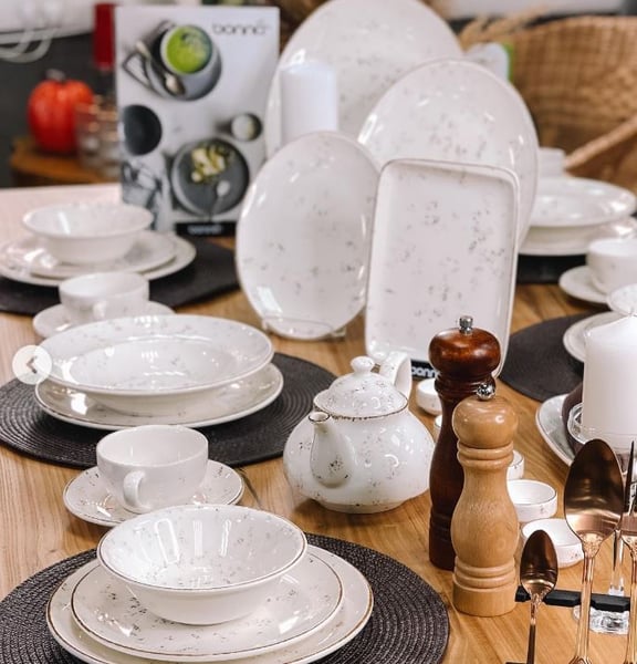 Коллекция Bonna Grain – это коллекция профессиональной фарфоровой посуды, расписанная вручную и доступная в оригинальном дизайне, который обязательно будет привлекать внимание при подаче. Коллекция Bonna Grain представлена в белом цвете в теплых оттенках с кофейным кантом и вкраплениями: приятным сочетанием сливочного, коричневого, золотистого, черного цветов и идеально подходит для сервировки стола в столовой или кухне, в гостиной во время фуршета, ресторана или кафе.