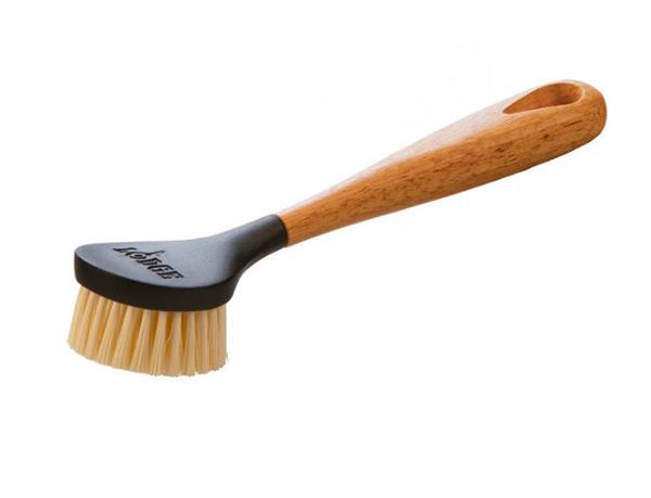 Щетка-скраб для чистки легко очищает закаленный чугун, не повреждая поверхность, благодаря густой щетине.