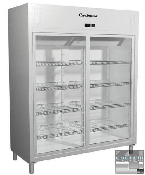 Холодильный шкаф ООО "Хладо плюс" V1400K Carboma это современный дизайн, удобство и надежность в эксплуатации. Предназначен для кратковременного хранения и продажи на предприятиях торговли и общественного питания напитков или тортов, а также других пищевых продуктов. Широкий холодильный шкаф с двумя стеклянными дверцами-купе. Оснащен электронным управлением и динамической системой обдува, позволяющей равномерно поддерживать заданную температуру и предотвращающей запотевание стекол шкафа если в помещении влажно. Приятный дизайн впишется в любой интерьер. Четыре уровня для выкладки продуктов (8 полок-решёток), которые можно установить под углом, увеличивая узнаваемость продаваемого бренда. Система охлаждения – динамическая, идеальна для охлаждения большого количества продуктов питания.