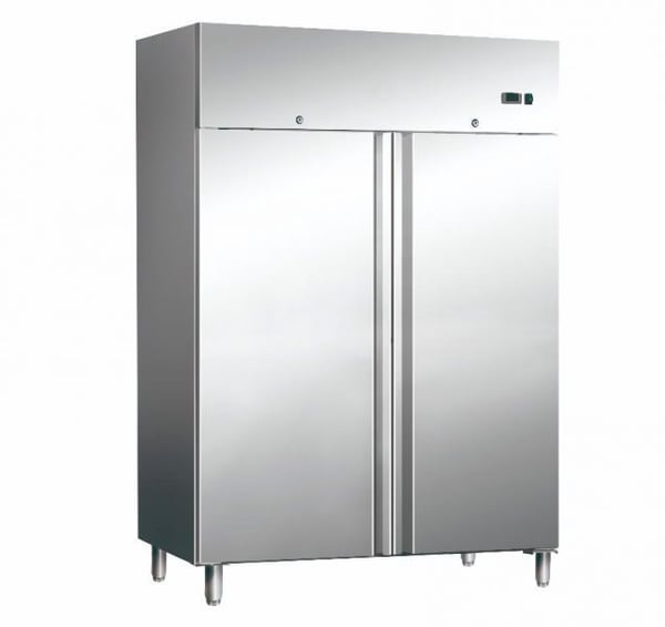 Две глухие двери с автоматическим блокирующим устройством. Рабочая температура составляет -2 ºC...+8 ºC при комнатной температуре +35ºC. Объем шкафа составляет 1300 л, 6 решетчатых полок GN 2/1.