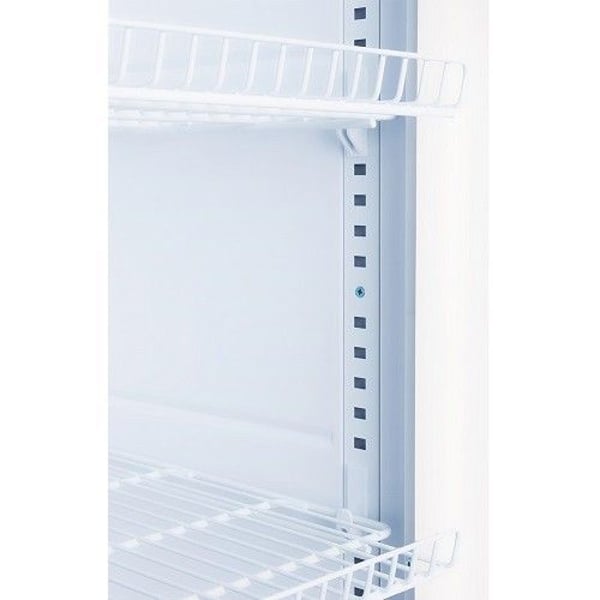 Холодильный шкаф имеет емкость 480 литров, 5 металлических полок сделанных решеткой, функция автоматической разморозки., замок, поддерживает температуру от +2°C до + 14°C.