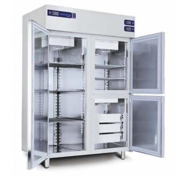 Трехкамерный комбинированный шкаф изготовлен из высококачественной нержавеющей стали, устойчивой к низким и высоким температурам и производится в Италии, таким образом, гарантируе высокое качество изделия и каждого его компонента.