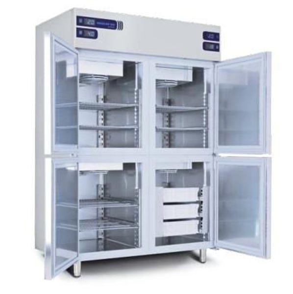 Четырехкамерныйй комбинированный шкаф изготовлен из высококачественной нержавеющей стали, устойчивой к низким и высоким температурам и производится в Италии, таким образом, гарантируе высокое качество изделия и каждого его компонента.