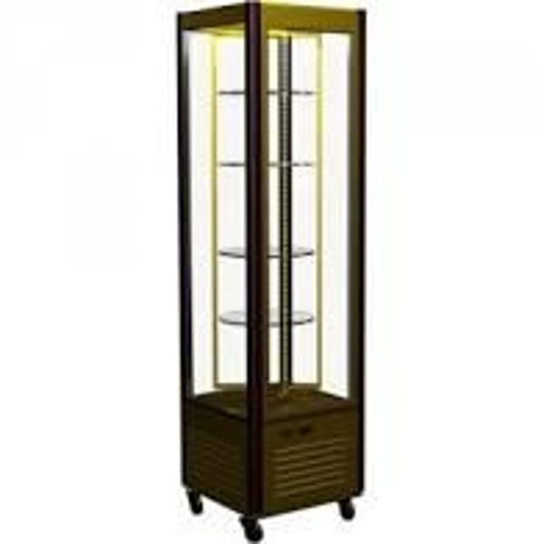 Профессиональная кондитерская витрина имеет 4 вращающиеся стеклянные полки, диаметром 450 мм. Они регулируются по высоте и могут с легкостью извлекаться для облегчения очистки.