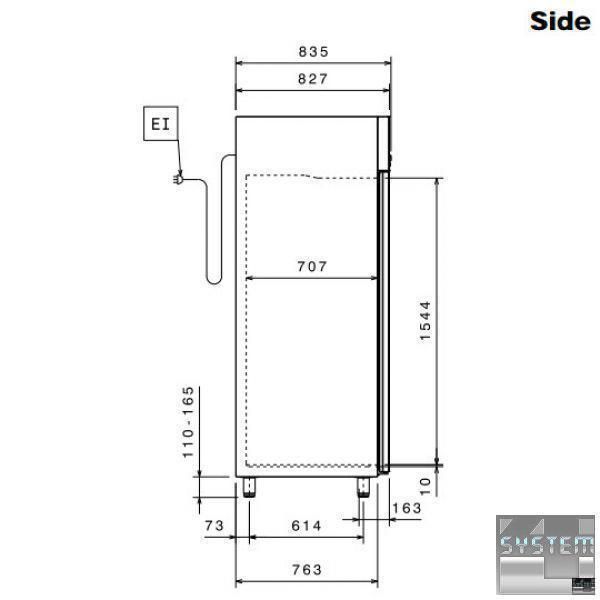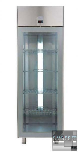 Морозильный шкаф ECOSTORE 727277, однодверный, объёмом 670л., изоляция толщиной 75мм., температурный режим работы -20…-15°С, скрытый испаритель, цифровой дисплей, подсветка камеры, автоматическая оттайка, дверь со стеклянной вставкой, замком и оптическим датчиком, климат класс +32°С, в комплекте с 3 полками GN2/1 и направляющими, низкий уровень энергопотребления, исполнение нерж. сталь AISI 304. Профессиональный холодильник имеет прямоугольную конструкцию с габаритными размерами: 710мм (длина), 837мм (глубина), 2050мм (высота).