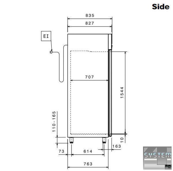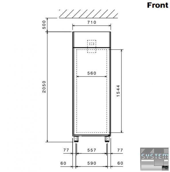 Морозильный шкаф ECOSTORE 727278, двухдверный 2½, объёмом 670л., изоляция толщиной 75мм., температурный режим работы -22…-15°С, скрытый испаритель, цифровой дисплей, автоматическая оттайка, двери с замком и оптическим датчиком, климат класс +43°С, в комплекте с 3 полками GN 2/1 и направляющими, низкий уровень энергопотребления (Class 6), исполнение нерж. сталь AISI 304. Профессиональный холодильник имеет прямоугольную конструкцию с габаритными размерами: 710мм (длина), 837мм (глубина), 2050мм (высота).