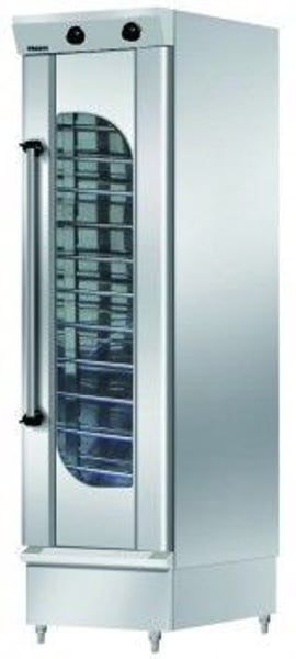 Можно смонтировать расстоечный шкаф и конвекционную печь друг на друга, что сэкономит пространство и повысит функциональность выпекания хлебобулочных изделий. В данном шкафу 15 уровней под противни размером 600х400 мм, ручное управление аппаратом, одинарная дверь со стеклом.