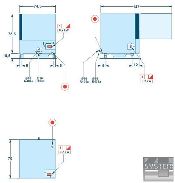 Модели с индексом R предназначены для использования с отдаленными узлами охлаждения, на максимальном расстоянии 10 м от холодильной установки, трубы не поставляются.