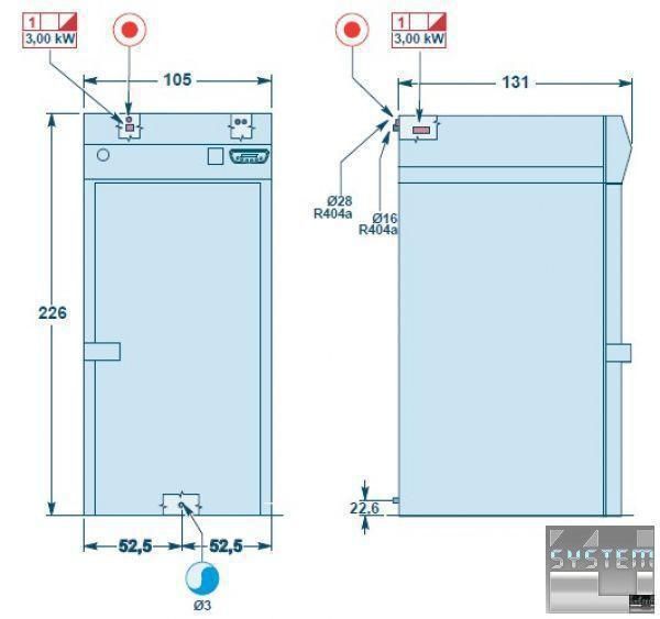 Могуть быть использованы с отдаленными узлами охлаждения, на максимальном расстоянии 10 м от холодильной установки, трубы не поставляются.