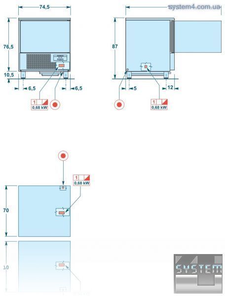 Габаритные, (ДхШхВ) см.: 74,5x70x87