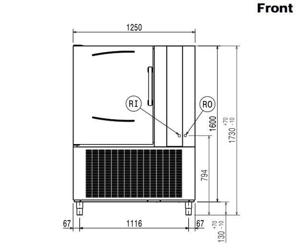 Аппарат шокового охлаждения/заморозки на 10 GN2/1 уровней или под пекарские листы 600x400мм, производительность - 70/70 кг./цикл, два дисплея управления, таймер, информационная панель, полиуретановая изоляция толщиной 60мм, испаритель с защитой от коррозии, циклы работы: Cruise (полностью автоматический режим по температурному щупу), мягкое охлаждение (-2°С), жесткое охлаждение (-20°С), шоковая заморозка (-41°С), хранение при температуре +3°С (автоматический режим при завершении основного цикла охлаждения), хранение при температуре -18°С (автоматический режим при завершении основного цикла заморозки), turbo-охлаждение (беспрерывная работа на высокой мощности), режим для мороженного, работа по таймеру или по щупу согласно NF и UK нормативов, автооттайка горячим газом, в комплекте трехзонный пробник-зонд, под дистанционный холодильный агрегат (отдельная опция), исполнение - нерж. сталь AISI 304