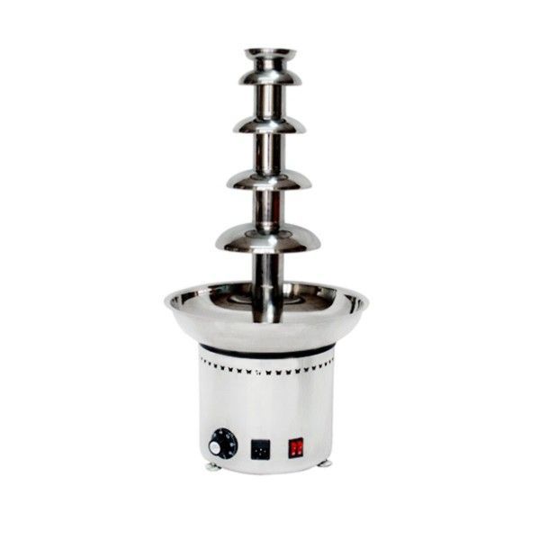 Шоколадный фонтан изготовлен из высококачественной нержавеющей стали AISI 304. Оборудован терморегулятором с диапазоном регулировки температуры от 30 до 110ºС. Световой индикатор включения. Корпус окрашен в белый цвет. 5 уровней для стекания шоколада. Подключение к сети 220 В.