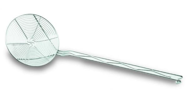 Сетка шумовки изготовлена из алюминия, а ручка из высококачественной нержавеющей стали, которая характеризуется высокой кислотостойкостью и коррозиестойкостью, способна выдерживать краткосрочное поднятие температуры до 900 градусов по Цельсию.