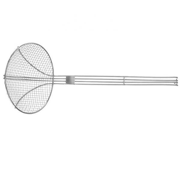 Шумовка усиленная, сетчатая. Выполнена из нержавеющей стали, имеет удобную ручку с закругление на конце.