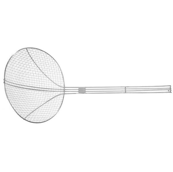 Шумовка усиленная, сетчатая. Выполнена из нержавеющей стали, имеет удобную ручку с закруглением на конце.