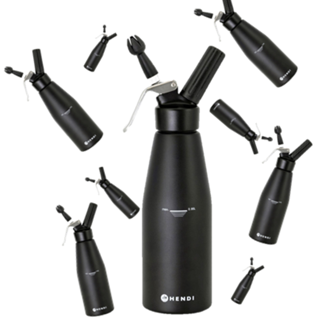Сифон для взбивания сливок HENDI 588598 относится к кондитерскому инвентарю для ресторанов, кафе, баров и других общепитов. Позволяет легко и быстро приготовить взбитые сливки, кремы, муссы, а также отлично послужит украшением для капучино, кофе, шеек, мороженого и кондитерских изделий.