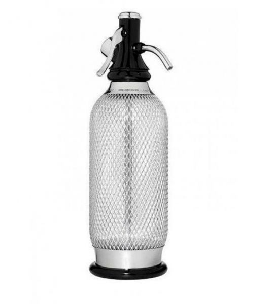 Бутылка из пластика (ПЭТФ) покрытая сеткой из полированной высококачественной стали, головка устройства с рычагом давления.
