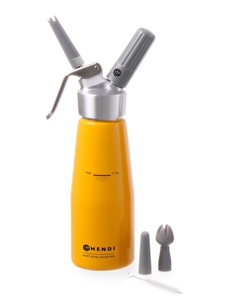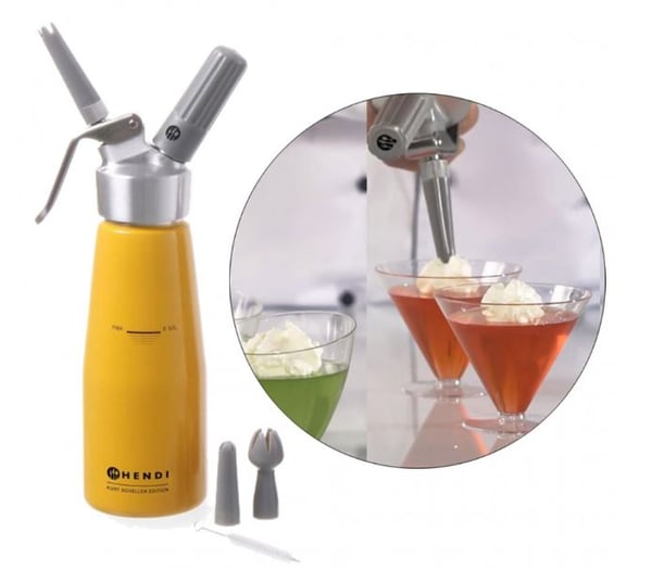 Сифон для взбивания сливок HENDI 975855 относится к кондитерскому инвентарю для ресторанов, кафе, баров и других общепитов. Позволяет легко и быстро приготовить взбитые сливки, кремы, муссы, а также отлично послужит украшением для капучино, кофе, шеек, мороженого и кондитерских изделий.