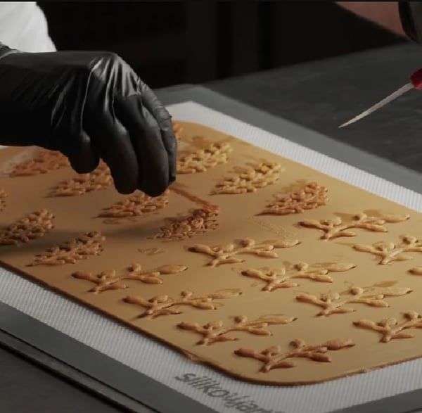 Универсальную силиконовую форму EDEN от Silikomart используют для создания элегантного декора из узоров маленьких веток для десертов, а также для декорирования первых и вторых блюд или создания оригинальных аперитивов. Можно украшать готовые блюда с кремами, муссами, а также овощами, мясом и даже рыбой. Оригинальная форма разработана итальянским шеф-поваром Джимми Эриксоном.
