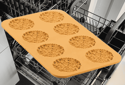 Удалить остатки жира можно, прокипятив форму около 10 минут. Подходит для мытья в