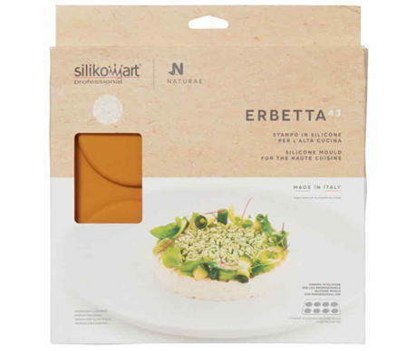 Универсальную силиконовую форму ERBETTA 43 от Silikomart используют как форму для выпечки, для замораживания, для семифредо, для декора, для муссовых десертов, а также для декорирования первых и вторых блюд или создания оригинальных аперитивов. Можно украшать готовые блюда с кремами, муссами, а также овощами, мясом и даже рыбой.