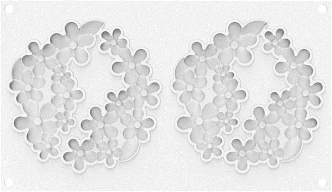 Текстурированная силиконовая форма FLORA 80 от Silikomart предназначена для создания кружевных украшений из айсинга, шоколада и мастики. Flora 80 позволяет создавать сразу два украшения, которые можно использовать вместе на блюде или по отдельности в двух десертах. Она идеально подходит для украшения тортов, капкейков и других кондитерских изделий, предоставляя кондитерам возможность реализовать самые смелые творческие замыслы.