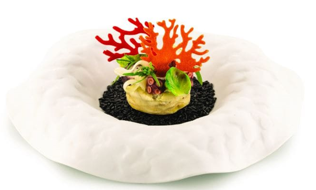Универсальную силиконовую форму CORALLO от Silikomart используют для создания элегантного декора из узоров миниатюрных кружевных кораллов, а также для декорирования первых и вторых блюд или создания оригинальных аперитивов. Можно украшать готовые блюда с кремами, муссами, а также овощами, мясом и даже рыбой.
