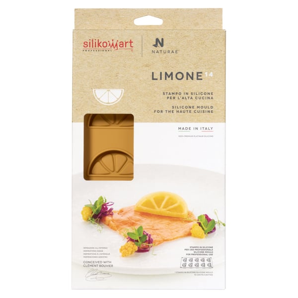 Универсальная силиконовая форма LIMONE 14 от Silikomart используется для создания элегантного декора из узоров миниатюрных кружевных лимонов, а также для декорирования первых и вторых блюд или создания оригинальных аперитивов. Можно украшать готовые блюда с кремами, муссами, а также овощами, мясом и даже рыбой.