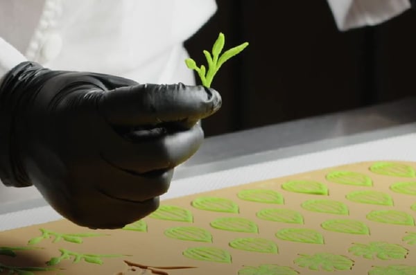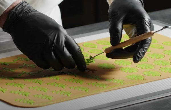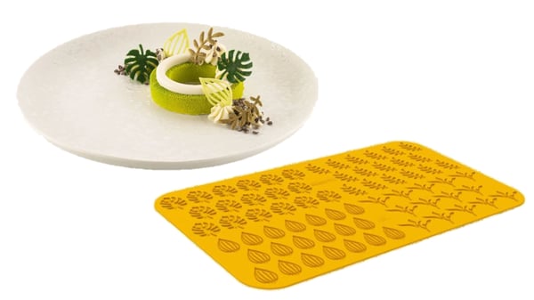 Универсальную силиконовую форму GIARDINO от Silikomart используют для создания элегантного декора из разнообразных узоров миниатюрных кружевных листьев, а также для декорирования первых и вторых блюд или создания оригинальных аперитивов. Можно украшать готовые блюда с кремами, муссами, а также овощами, мясом и даже рыбой.