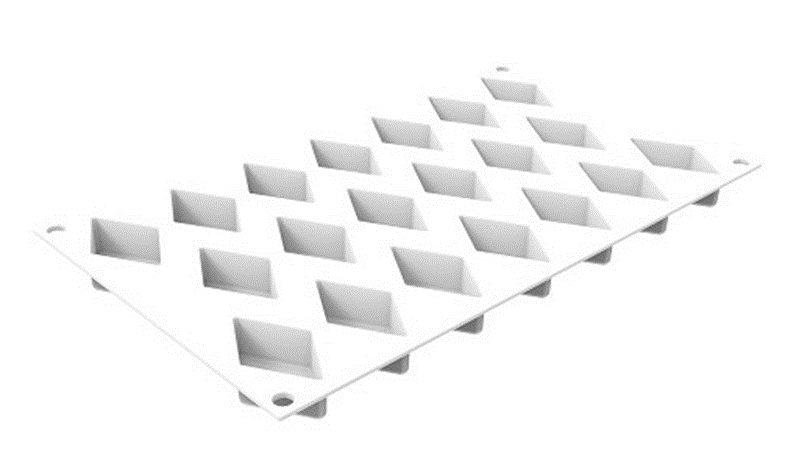 Силиконовая форма ROMBO XS Silikomart позволяет создавать оригинальные изысканные однопорционные десерты, а объемы каждой лунки позволяют получить их сразу 20 позиции. Эта форма идеально подходит для создания конфет, элегантных муссов и минидесертов, семифреддо, которые придадут эффектность и шарм вашей десертной витрине. Форма ROMBO XS Silikomart обеспечивает простой и инновационный способ создания уникальных десертов, которые будут обязательно привлекать внимание.