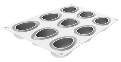 Силиконовая форма для выпечки и аксессуары из этого материала, выдерживают ресурс в 3000 циклов выпечки/заморозки, в диапазоне температур от – 60°C до + 230°C, что позволяет использовать их как для замораживания десертов, так и для выпечки в духовках и конвекционных печах.