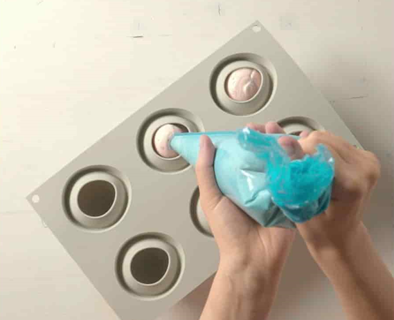 — Удалите излишки теста, почистив поверхность силиконовой формы, чтобы предотвратить разлив. —Выпекайте в предварительно разогретой до 170°C духовке, лучше в духовке с вентилятором (7 минут).
