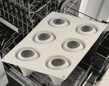 Форма с точностью повторяет очертания десерта и позволяет легко снимать готовые десерты, сводя риск их повреждения до минимума.