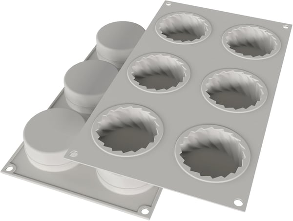 Silikomart использует чистый силикон, безопасный, химически инертный и отвечающий самым строгим стандартам пищевой безопасности. Элегантную силиконовую форму MINI DRESS от Silikomart используют как форму для выпечки, форму для заморозки и форму для муссовых порционных десертов, а также семифредо.
