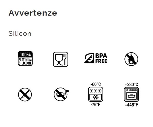 Silikomart использует чистый силикон, безопасный, химически инертный и отвечающий самым строгим стандартам пищевой безопасности.