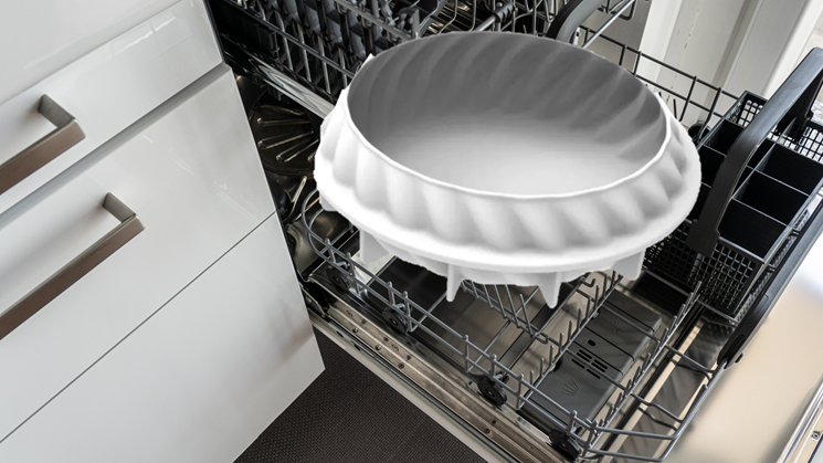 Удалить остатки жира можно, прокипятив форму около 10 минут. Подходит для мытья в посудомоечной машине.