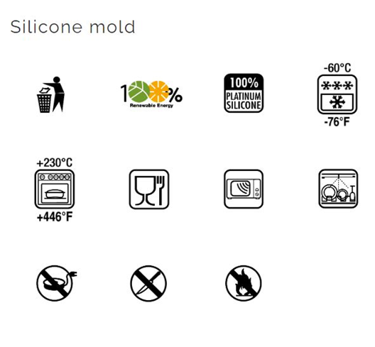 Silikomart использует чистый силикон, безопасный, химически инертный и отвечающий самым строгим стандартам пищевой безопасности.