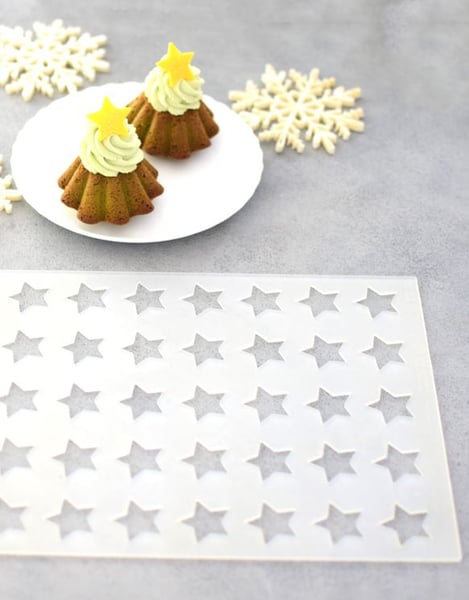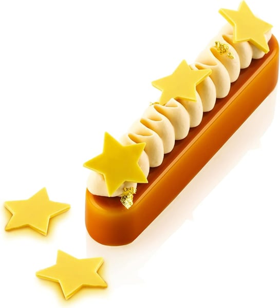 Текстурированный силиконовый коврик-трафарет CHABLON STAR от Silikomart предназначен для создания уникальных украшений из айсинга, шоколада и мастики как деталь-завершение композиции десерта. Он идеально подходит для украшения тортов, капкейков, мороженого, мусса, хлеба и т.д., предоставляя кондитерам возможность реализовать самые смелые творческие замыслы. Налейте шоколад или изомальт в полости формы, чтобы в кратчайшие сроки создать украшения для десертов.